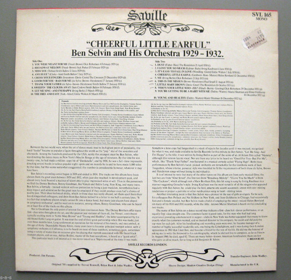 Notify me when Ben Selvin & His Orchestra Cheerful Little Earful (Ben Selvin And His Orchestra 1929-1932) Vinyl LP USED is available.