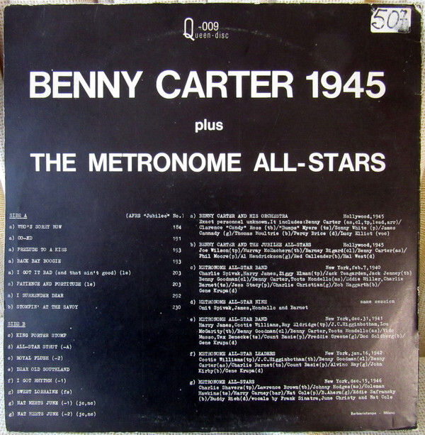 Product main image Benny Carter / Metronome All Stars Benny Carter 1945 Plus The Metronome All-Stars Vinyl LP USED additional image Benny Carter / Metronome All Stars Benny Carter 1945 Plus The Metronome All-Stars Vinyl LP USED additional image