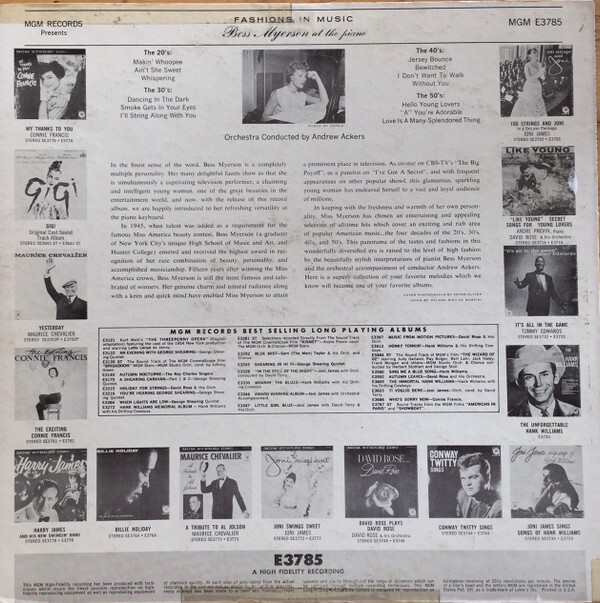 Notify me when Bess Myerson Fashions in Music Vinyl LP USED is available.