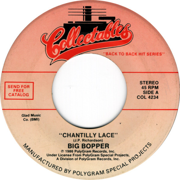 Title: Big Bopper / The Crew Cuts Chantilly Lace / Sh-Boom USED VINYL 7INCH 45 RPM STEREO