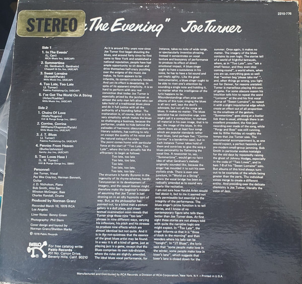 Title: Big Joe Turner In The Evening Vinyl LP USED
