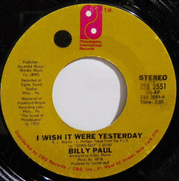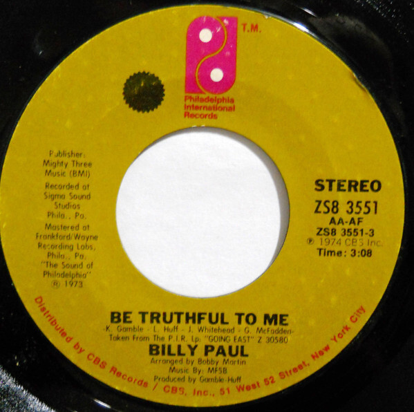 Billy Paul Be Truthful To Me / I Wish it Were Yesterday VINYL 7" USED