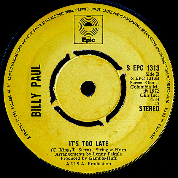 3. Billy Paul Brown Baby USED VINYL 7INCH 45 RPM SINGLE STEREO