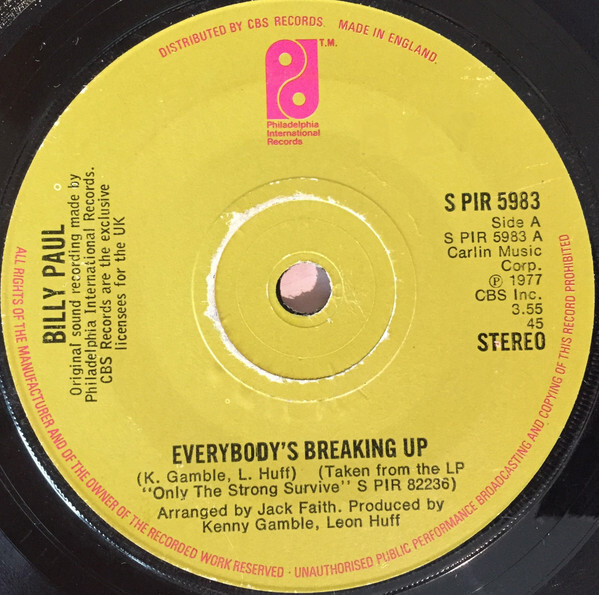 3. Billy Paul Everybody's Breaking Up USED VINYL 7INCH 45 RPM SINGLE STEREO