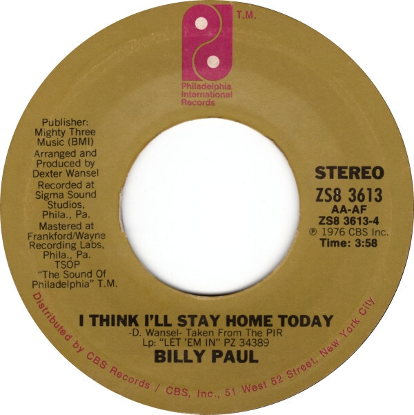 Notify me when Billy Paul How Good Is Your Game / I Think I'll Stay Home Today USED VINYL 7INCH SINGLE 45 RPM is available.