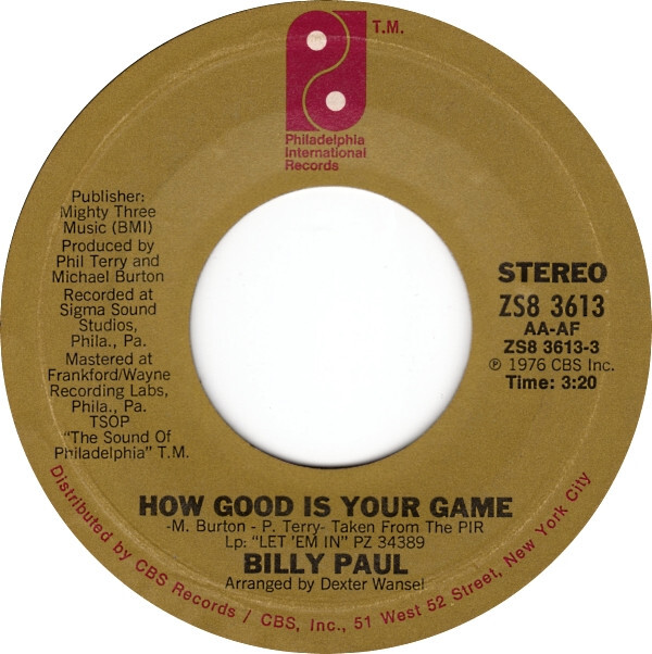 Title: Billy Paul How Good Is Your Game / I Think I'll Stay Home Today USED VINYL 7INCH SINGLE 45 RPM