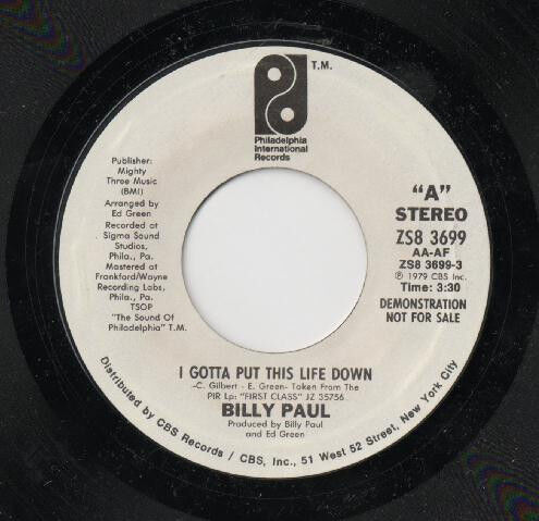 Billy Paul I Gotta Put This Life Down VINYL 7" USED