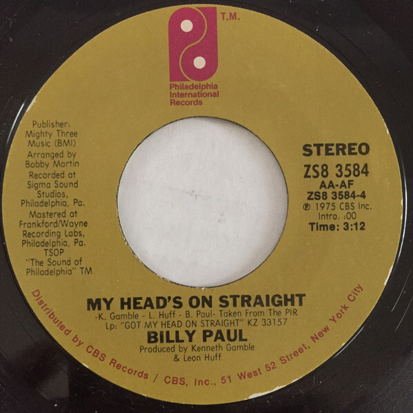 Notify me when Billy Paul Let's Make A Baby / My Head's On Straight USED VINYL 7INCH 45 RPM is available.