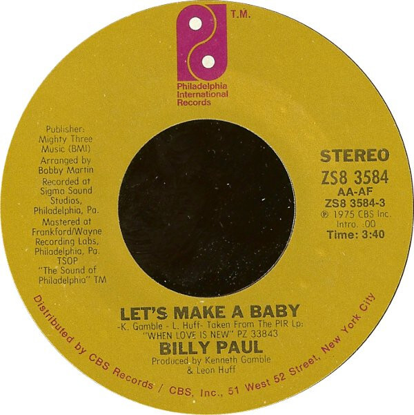 Billy Paul Let's Make A Baby / My Head's On Straight USED VINYL 7INCH 45 RPM
