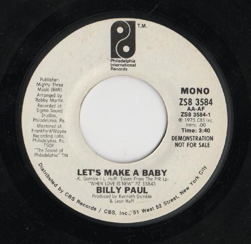 Billy Paul Let's Make A Baby USED VINYL 7INCH 45 RPM SINGLE PROMO STEREO MONO