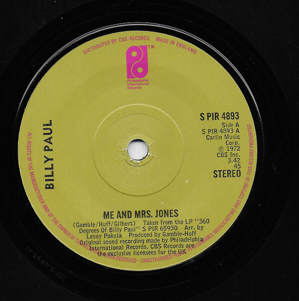 3. Billy Paul Me And Mrs. Jones USED VINYL 7INCH 45 RPM STEREO