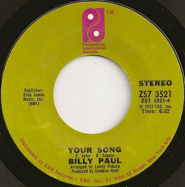Billy Paul Me And Mrs. Jones / Your Song USED VINYL 7INCH 45 RPM SINGLE STYRENE STEREO