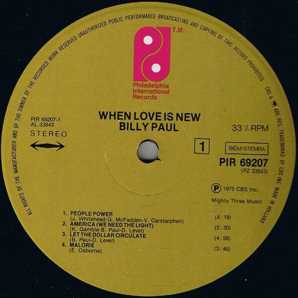 Title: Billy Paul When Love Is New Vinyl LP USED