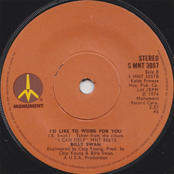 3. Billy Swan I'm Her Fool USED VINYL 7INCH 45 RPM STEREO SINGLE