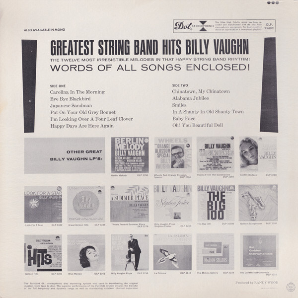 Notify me when Billy Vaughn Greatest String Band Hits Vinyl LP USED is available.