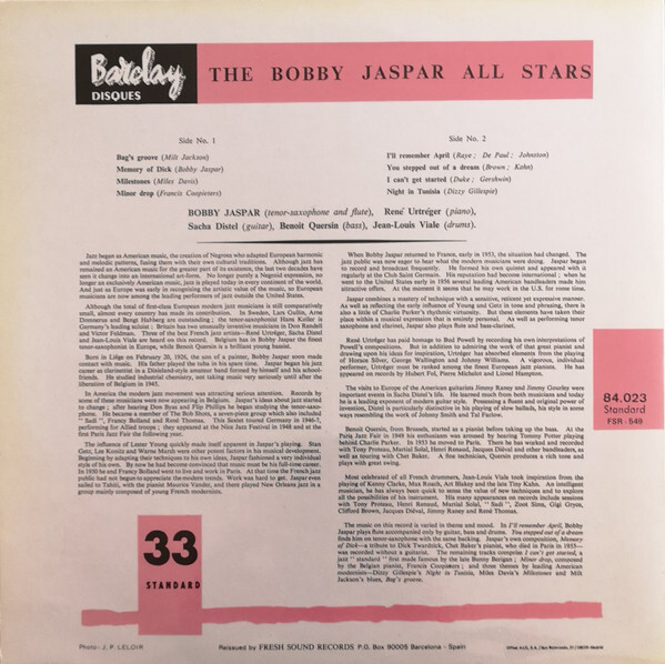 Notify me when Bobby Jaspar All Stars Bobby Jaspar And His All Stars Vinyl LP USED is available.