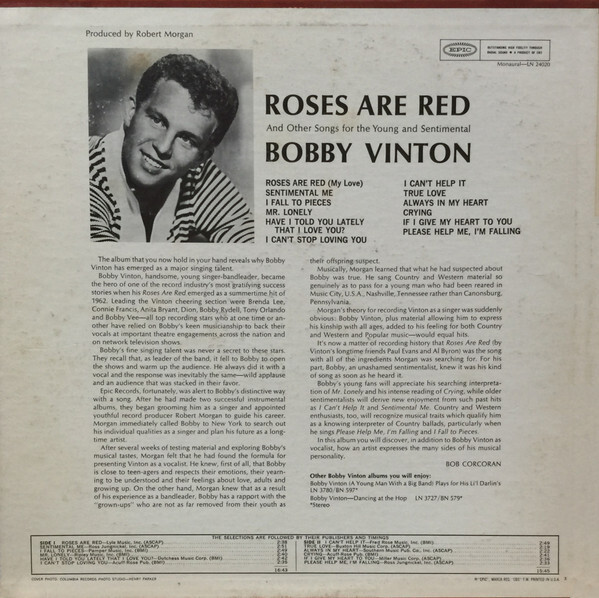 Title: Bobby Vinton Roses Are Red And Other Songs For The Young And Sentimental Vinyl LP USED