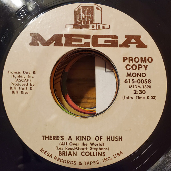 Title: Brian Collins (6) There's A Kind Of Hush (All Over The World) USED VINYL 7INCH 45 RPM PROMO STEREO MONO