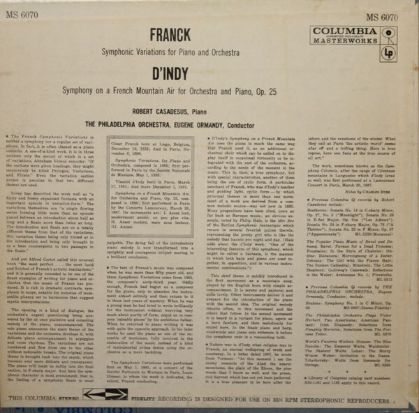 Title: César Franck / Vincent d'Indy / Robert Casadesus / The Philadelphia Orchestra / Eugene Ormandy Symphonic Variations • Symphony On A French Mountain Ai