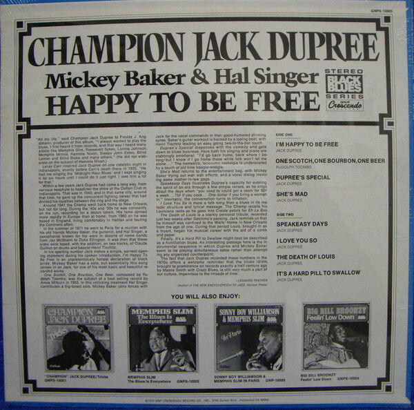 Notify me when Champion Jack Dupree / Mickey Baker / Hal Singer Happy To Be Free Vinyl LP USED is available.