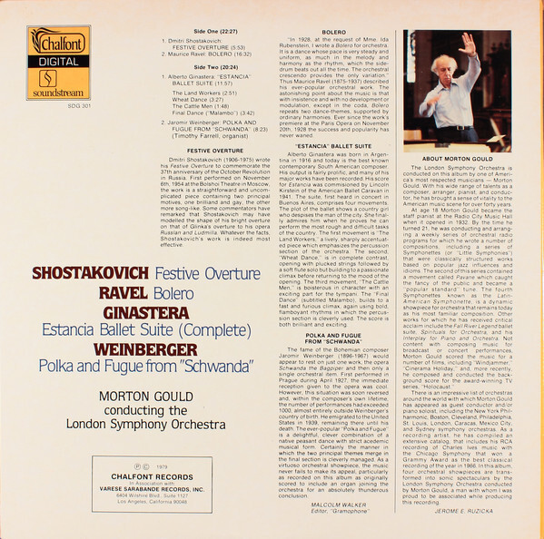 Title: Dmitri Shostakovich / Maurice Ravel / Alberto Ginastera / Jaromir Weinberger / Morton Gould / The London Symphony Orchestra Festive Overture / Bolero