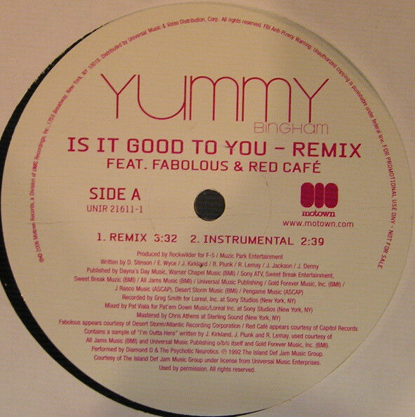 3. Elizabeth "Yummy" Bingham / Fabolous / Red Cafe Is It Good To You (Remix) Vinyl 12" USED