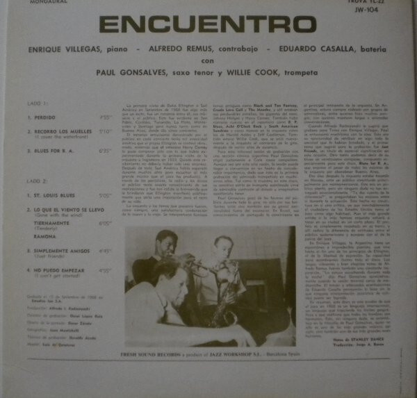 Enrique Villegas;Paul Gonsalves;Willie Cook Encuentro VINYL LP USED