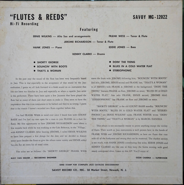 Product main image Ernie Wilkins / Frank Wess / Jerome Richardson / Hank Jones / Eddie Jones / Kenny Clarke Flutes & Reeds Vinyl LP USED additional image Ernie Wilkins / Frank Wess / Jerome Richardson / Hank Jones / Eddie Jones / Kenny Clarke Flutes & Reeds Vinyl LP USED additional image