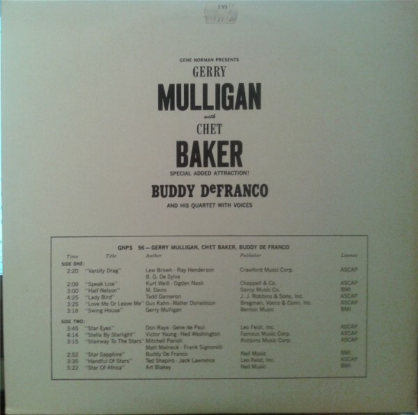 3. Gene Norman / Gerry Mulligan / Chet Baker / Buddy DeFranco Quartet / The Herman McCoy Choir Gerry Mulligan Quartet / Buddy DeFranco Quartet Vinyl LP U