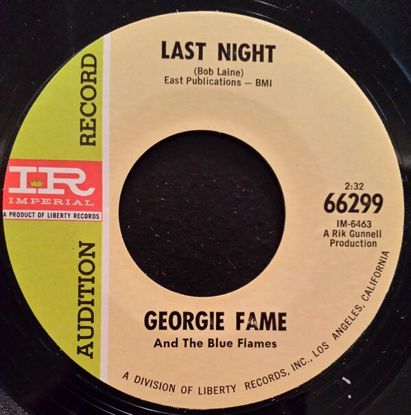 Notify me when Georgie Fame & The Blue Flames Last Night / Funny How Time Slips Away USED VINYL 7INCH 45 RPM PROMO is available.