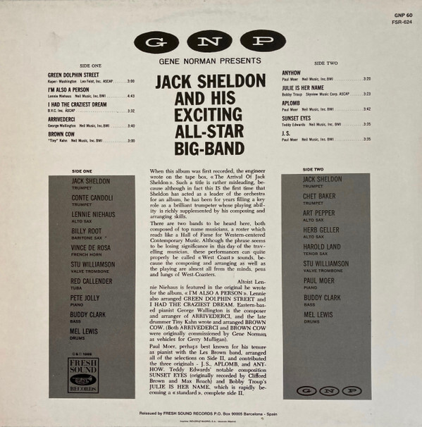 Title: Jack Sheldon And His Exciting All-Star Big-Band Jack's Groove Vinyl LP USED