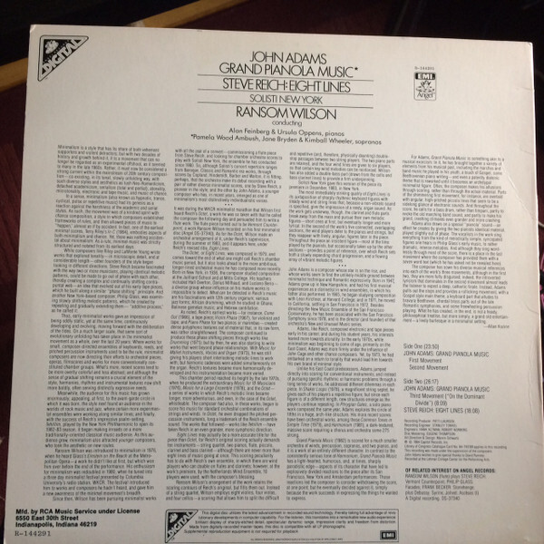 Title: John Adams / Steve Reich / Solisti New York / Ransom Wilson Grand Pianola / Eight Lines Vinyl LP USED