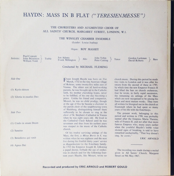 3. Joseph Haydn / Choir Of All Saints Church, Margaret Street / Winsley Chamber Ensemble / Michael Fleming (3) Mass In B Flat Vinyl LP USED