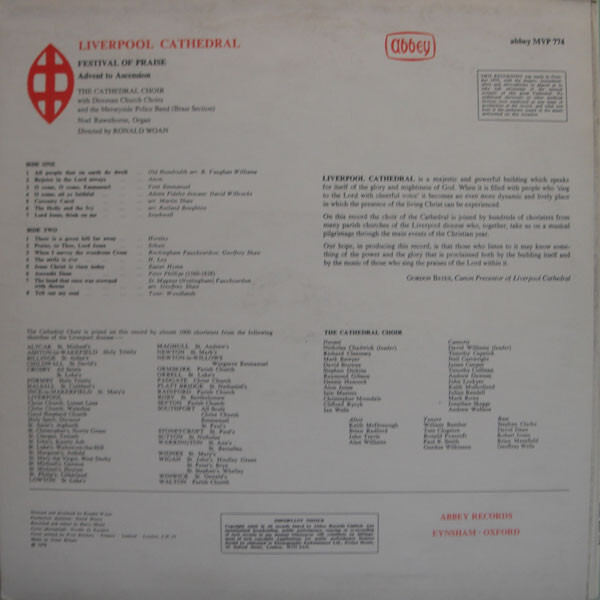 Title: Liverpool Cathedral Choir / Ronald Woan / Noel Rawsthorne Festival Of Praise Vinyl LP USED