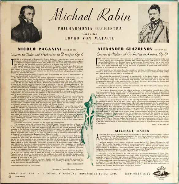 3. Michael Rabin / Niccolò Paganini / Alexander Glazunov / Philharmonia Orchestra / Lovro Von Matacic Violin Concerto No. 1 in D Major, Op. 6 / Violin Co