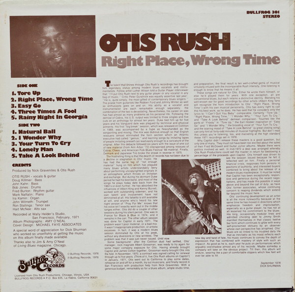 Otis Rush Right Place, Wrong Time Vinyl LP