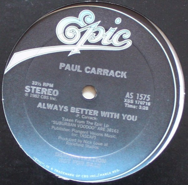 Notify me when Paul Carrack Always Better With You USED VINYL 12INCH 33 S RPM PROMO STEREO is available.