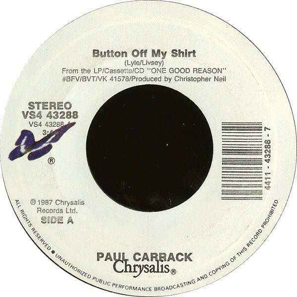 Title: Paul Carrack Button Off My Shirt USED VINYL 7INCH 45 RPM