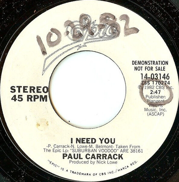 Notify me when Paul Carrack I Need You Vinyl 7" USED is available.