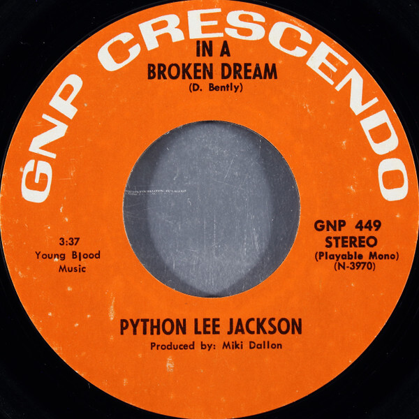 Title: Python Lee Jackson In A Broken Dream USED VINYL 7INCH 45 RPM SINGLE STYRENE