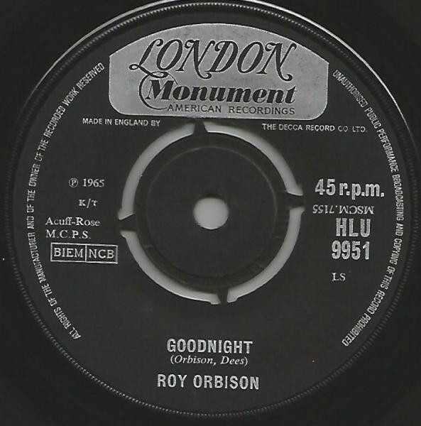 3. Roy Orbison Goodnight USED VINYL 7INCH 45 RPM SINGLE