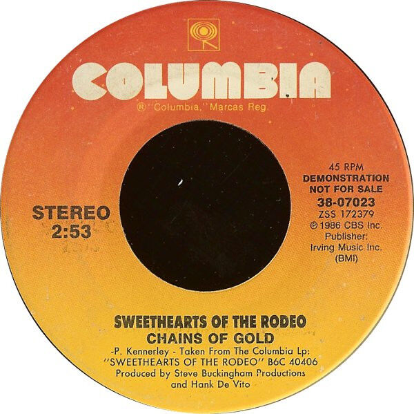 Notify me when Sweethearts Of The Rodeo Chains Of Gold Vinyl 7" USED is available.