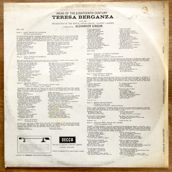 Product main image Teresa Berganza / Orchestra Of The Royal Opera House, Covent Garden / Alexander Gibson Arias Of The 18th Century Vinyl LP USED additional image Teresa Berganza / Orchestra Of The Royal Opera House, Covent Garden / Alexander Gibson Arias Of The 18th Century Vinyl LP USED additional image