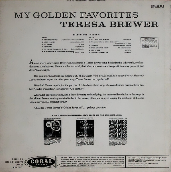 Notify me when Teresa Brewer My Golden Favorites Vinyl LP USED is available.
