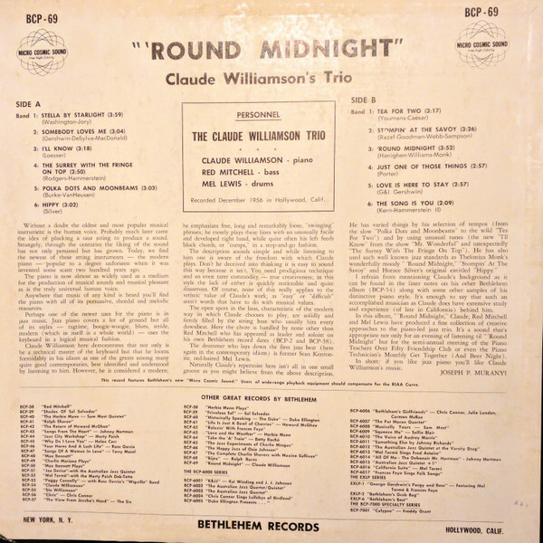 3. The Claude Williamson Trio 'Round Midnight Vinyl LP USED