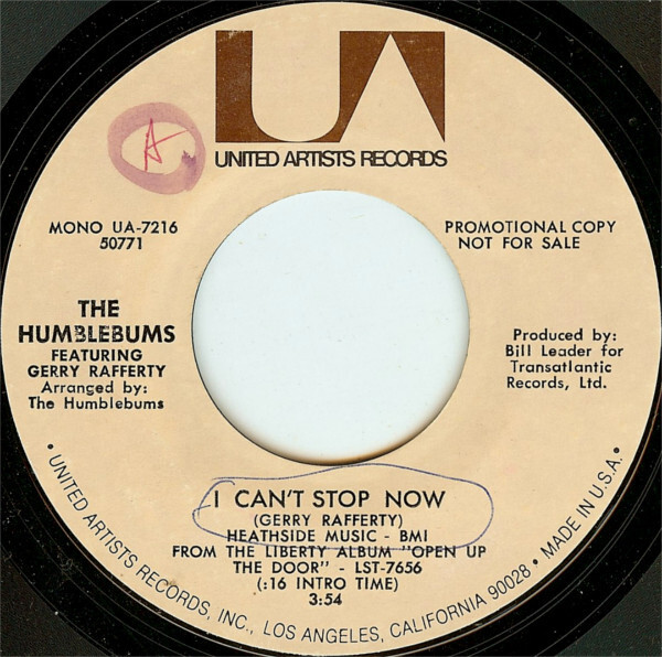 Notify me when The Humblebums I Can't Stop Now USED VINYL 7INCH 45 RPM PROMO is available.