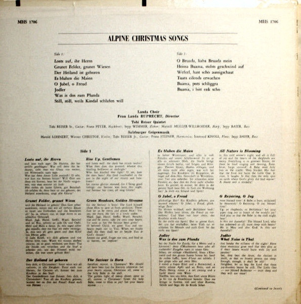 Title: Tobi Reiser Quintett / Salzburger Geigenmusik / Landa-Chor / Landa Ruprecht Alpine Christmas Songs Vinyl LP USED