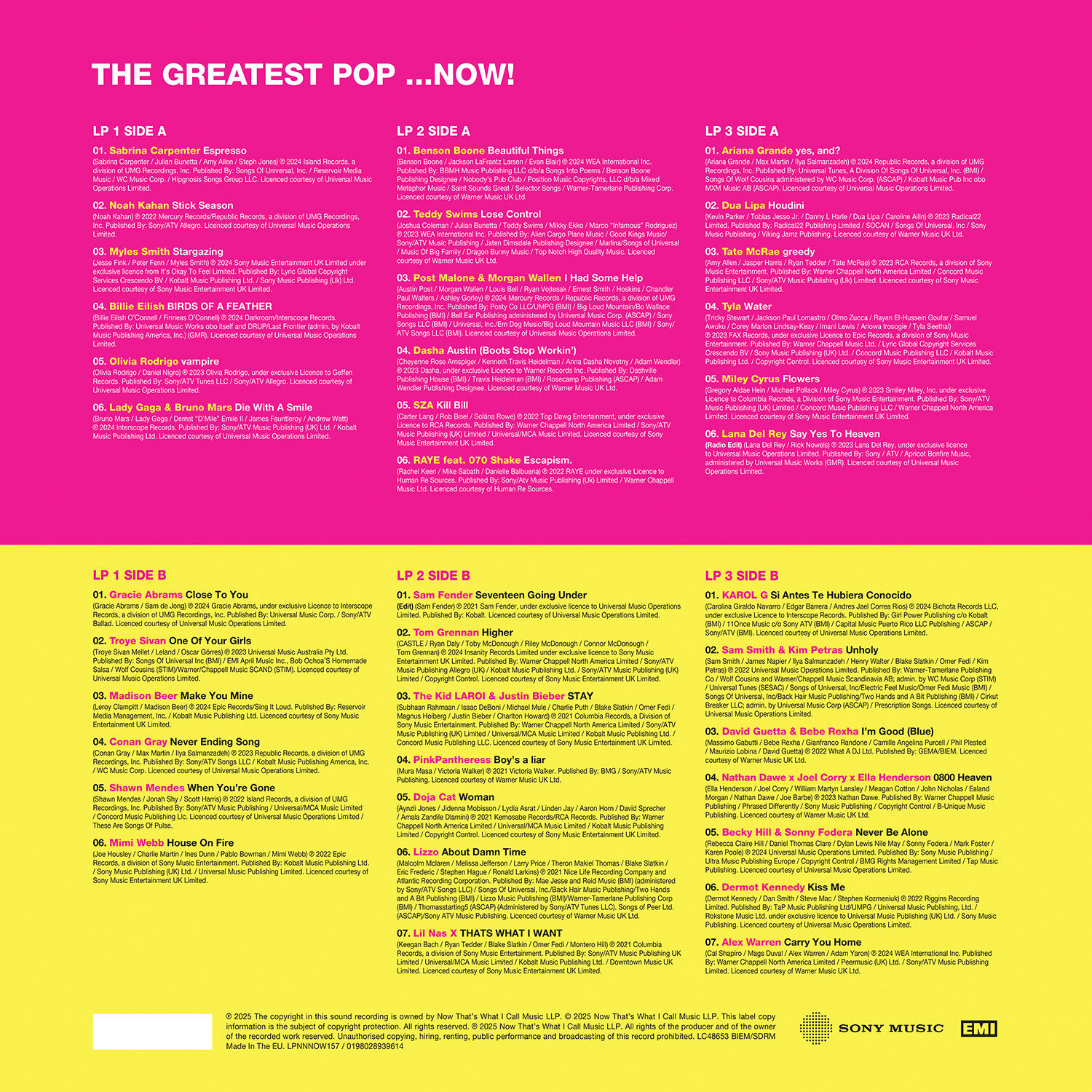 NOW Music are very proud to present NOW That’s What I Call Pop! – 38 massive pop anthems - including 8 UK #1s – and with all tracks featured on a 2-CD collection, and on a stunning 3-LP vinyl pressed in a different colour for each disc: Bright Yellow, Hot Pink and Baby Blue, releasing 23rd May 2025.