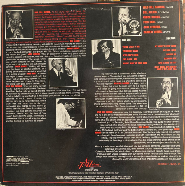 Title: Wild Bill Davison's 75th Anniversary Jazz Band Jaylin's Club Berne, Switzerland Presents: Wild Bill Davison's 75th Anniversary Band Vinyl LP USED