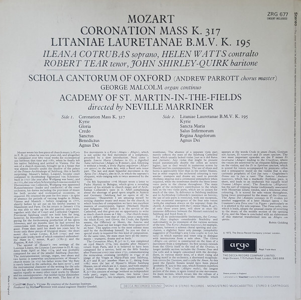 Title: Wolfgang Amadeus Mozart / Ileana Cotrubas / Helen Watts / Robert Tear / John Shirley-Quirk / The Academy Of St. Martin-in-the-Fields / Schola Cantorum